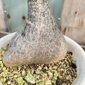フィランサス・ミラビリスは東南アジアのタイ~ラオス原産の常緑低木です。パキポジウムに似た銀白色の塊根植物で、徳利のような根元が魅力です。幹の頂点からきれいな葉をのばします。葉はねむの木のように、日中開き、夜は閉じます。成長が遅い植物で、鉢植えで楽しみます。耐寒性があまりないので、冬はなるべく暖かい場所で管理してください。