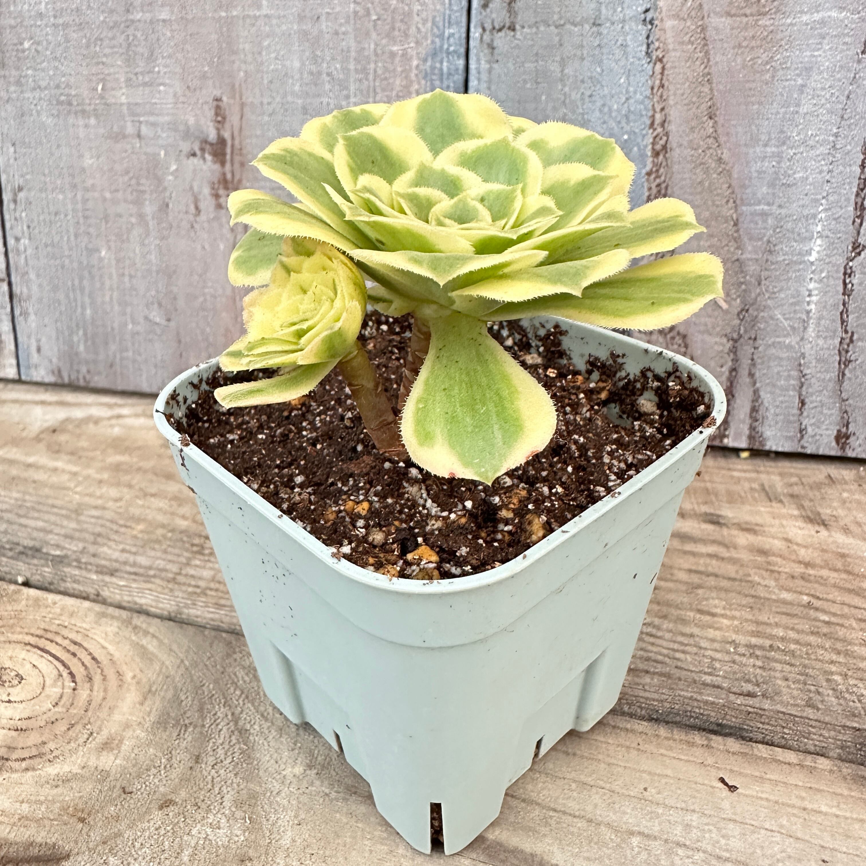 流通する多くの種類は灌木状に茎立ちし、その先に葉が展開して整った形のロゼットを形成します。葉色も真っ黒から明るい緑、斑入りの品種では白や黄、紅色に染まるものもあり、観葉植物として扱われることもあります。
