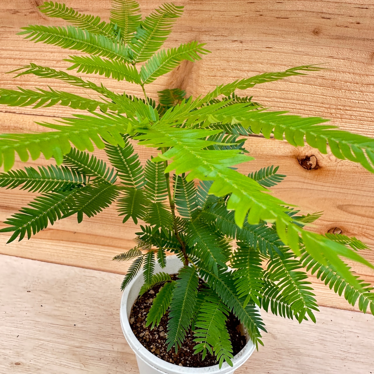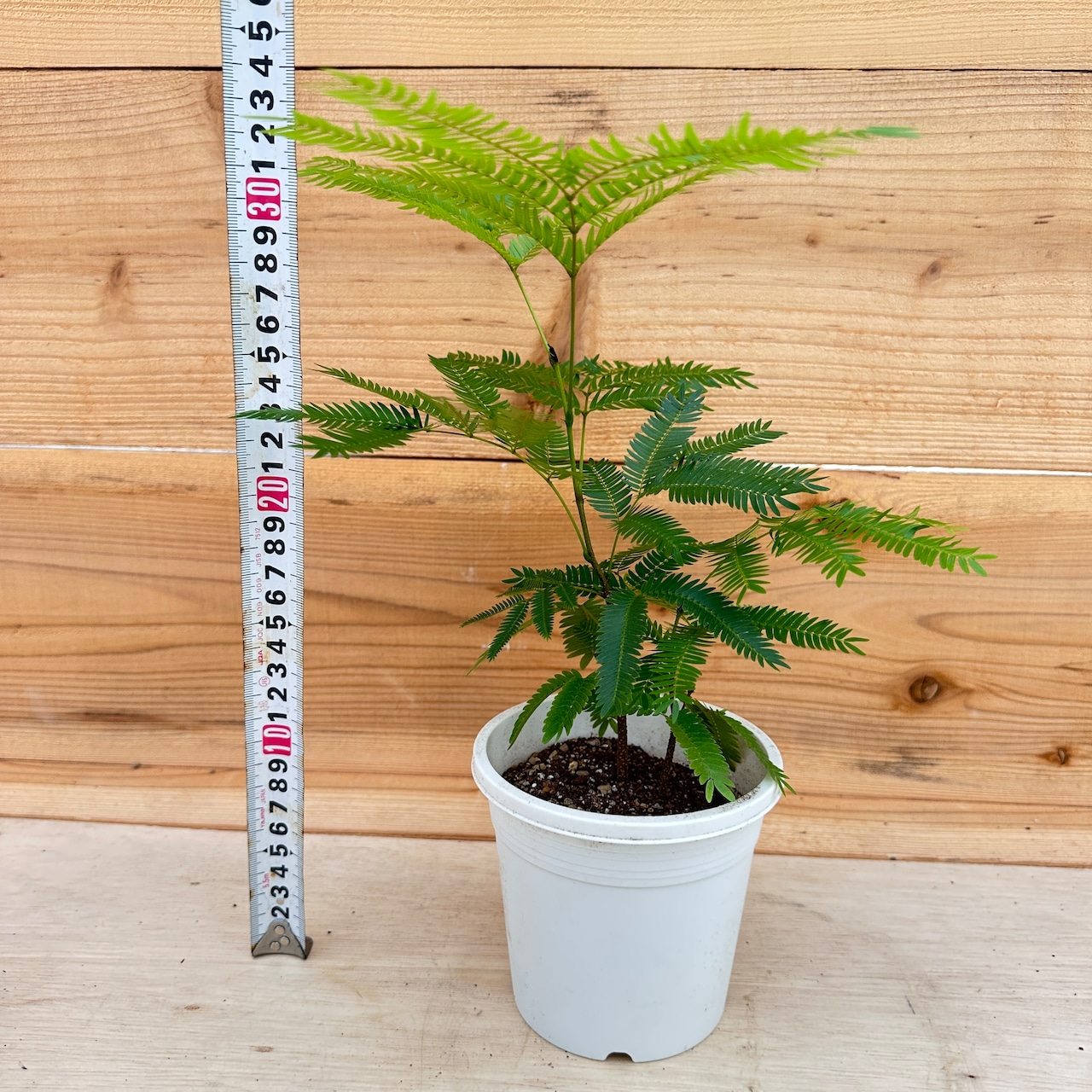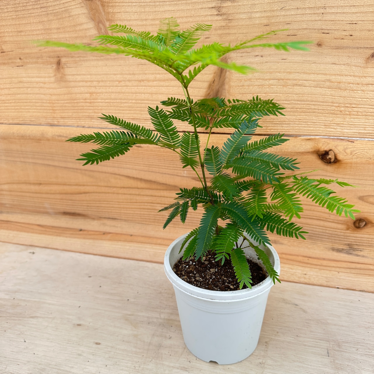 小さく細かな葉を持ち、風になびく姿が涼し気な印象を与えてくれます。「就眠運動」といって夜になると葉を閉じる習性があります。1日のうちに、違う表情を見せる姿が可愛らしい植物です。