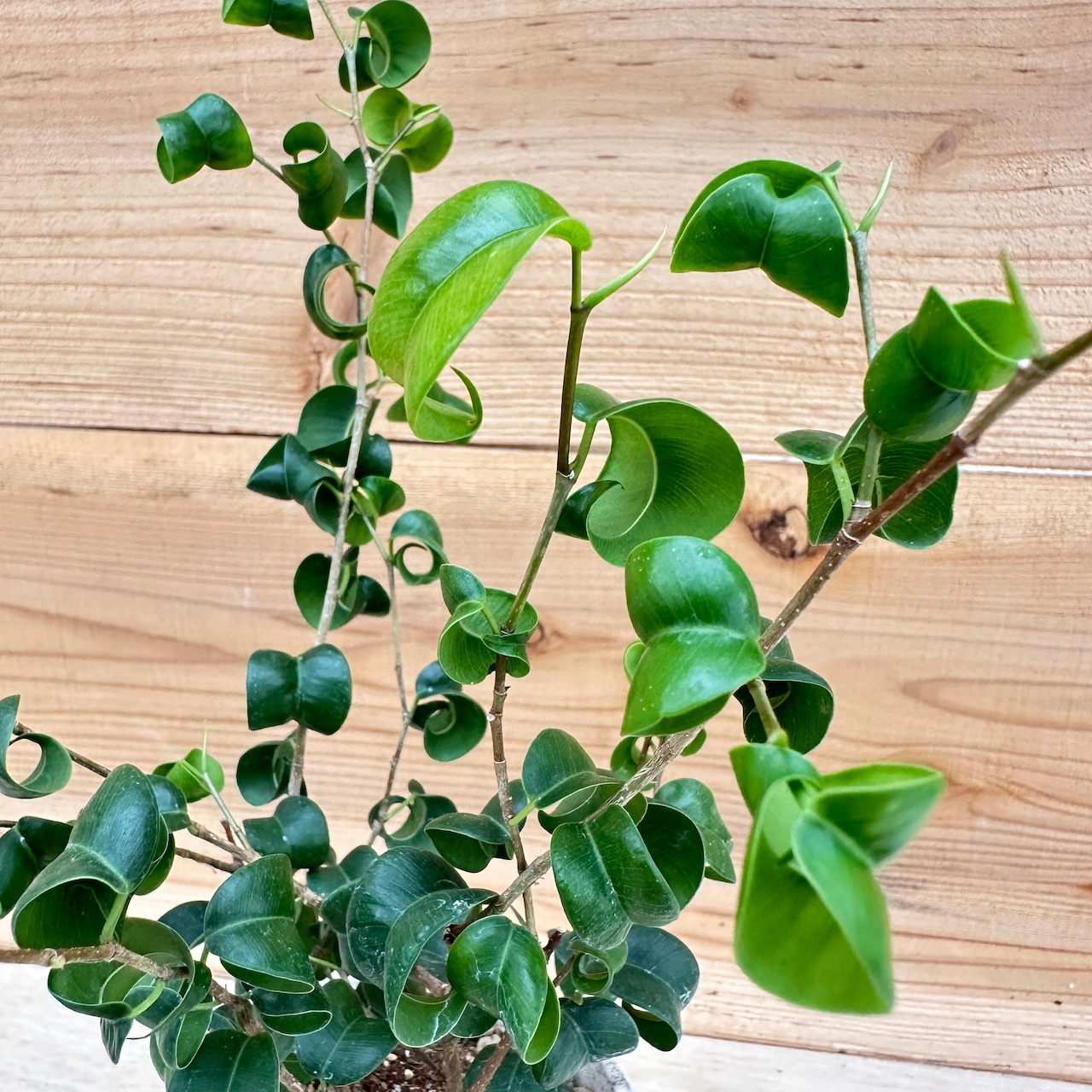 ベンジャミン・バロックの魅力といえば、やはりこの特徴的なカールした葉でしょう。見た目がかわいいカールした葉がインテリアグリーンとしての存在感を発揮します。葉の表面には光沢があり、お部屋の雰囲気を一段と上質なものにしてくれます。