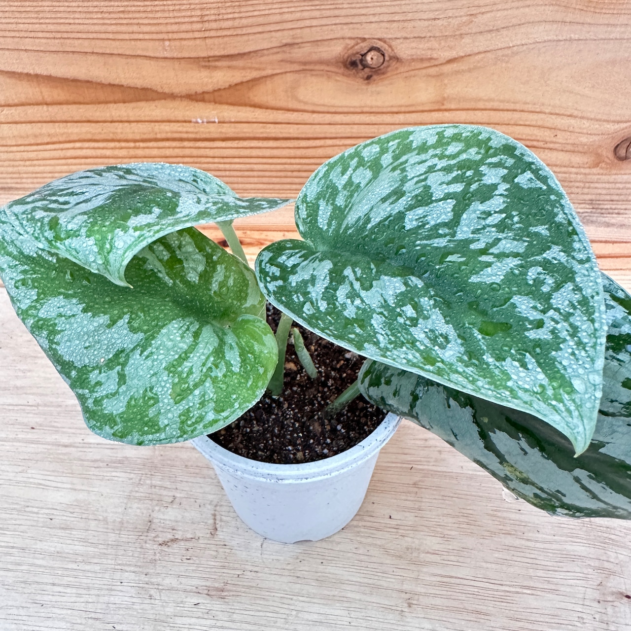 スキンダプサスは、不規則なシルバーグリーンの斑が特徴的な植物です。耐陰性が強いので、光量が少ない室内でも管理できます。
