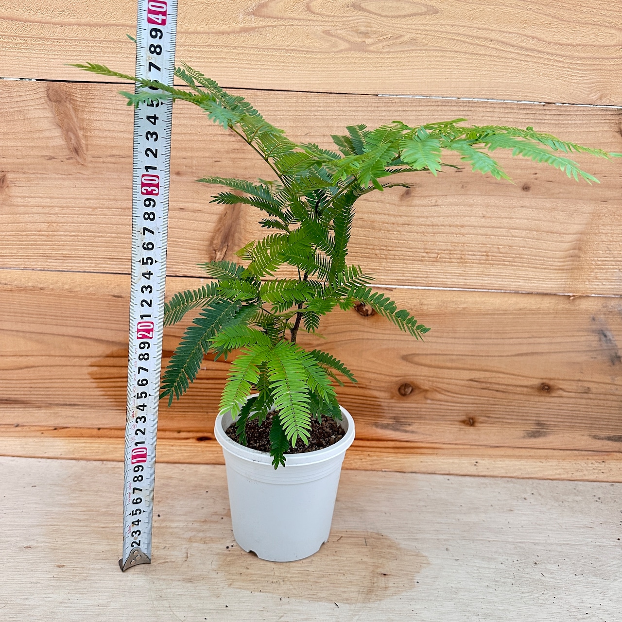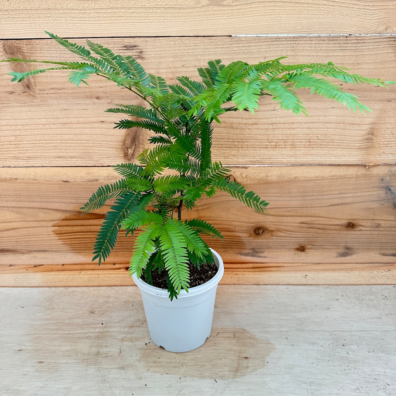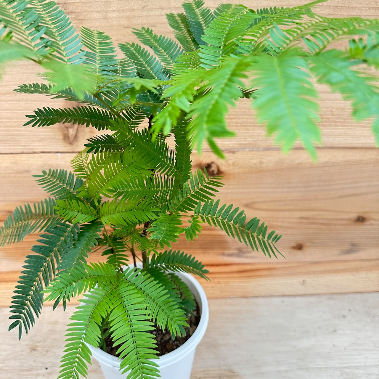 小さく細かな葉を持ち、風になびく姿が涼し気な印象を与えてくれます。「就眠運動」といって夜になると葉を閉じる習性があります。1日のうちに、違う表情を見せる姿が可愛らしい植物です。